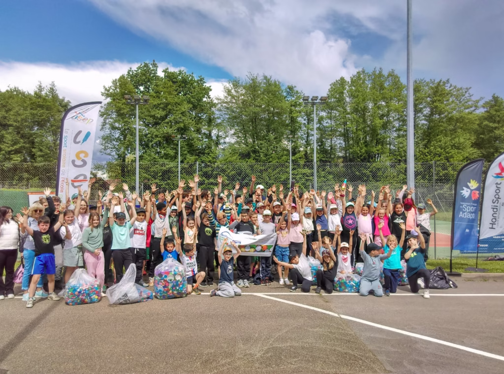 Organisation d’une rencontre Sport Pour Tous avec l’USEP 01, Handisport et le Sport AdaptĂ© : c’est l’occasion de permettre Ă des Ă©lèves d’Ă©coles ordinaires et Ă des Ă©lèves d’Ă©tablissements spĂ©cialisĂ©s de participer ensemble Ă des ateliers sportifs et de coopĂ©rer pour collecter des bouchons.
