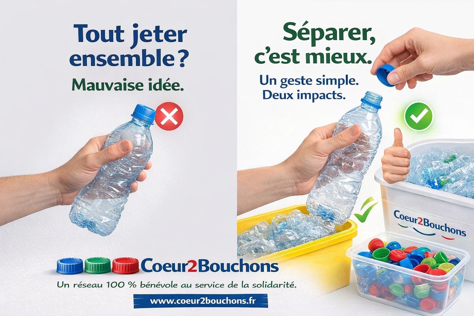 💙💚❤️ Coeur2Bouchons, un réseau 100% bénévole au service de la solidarité.